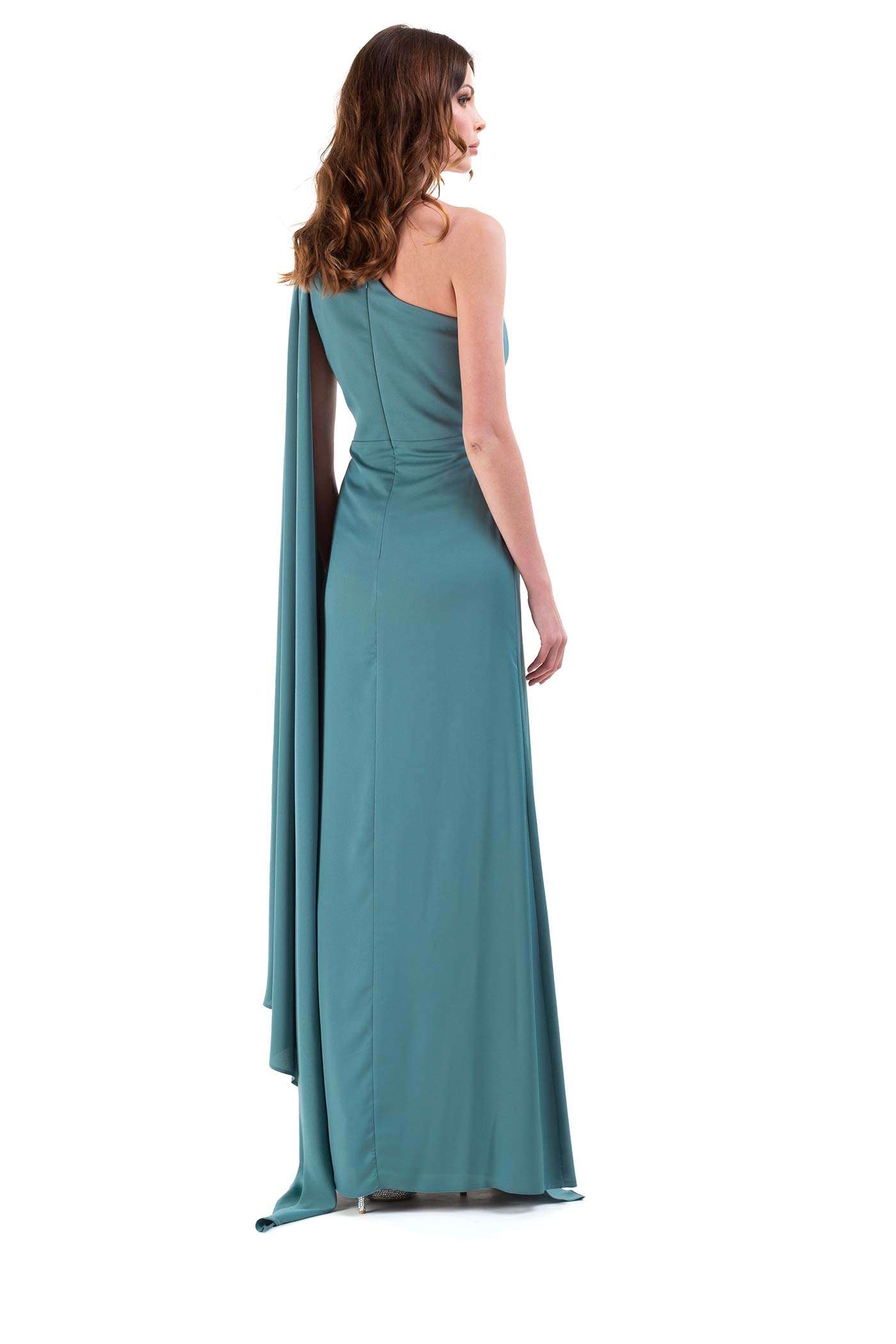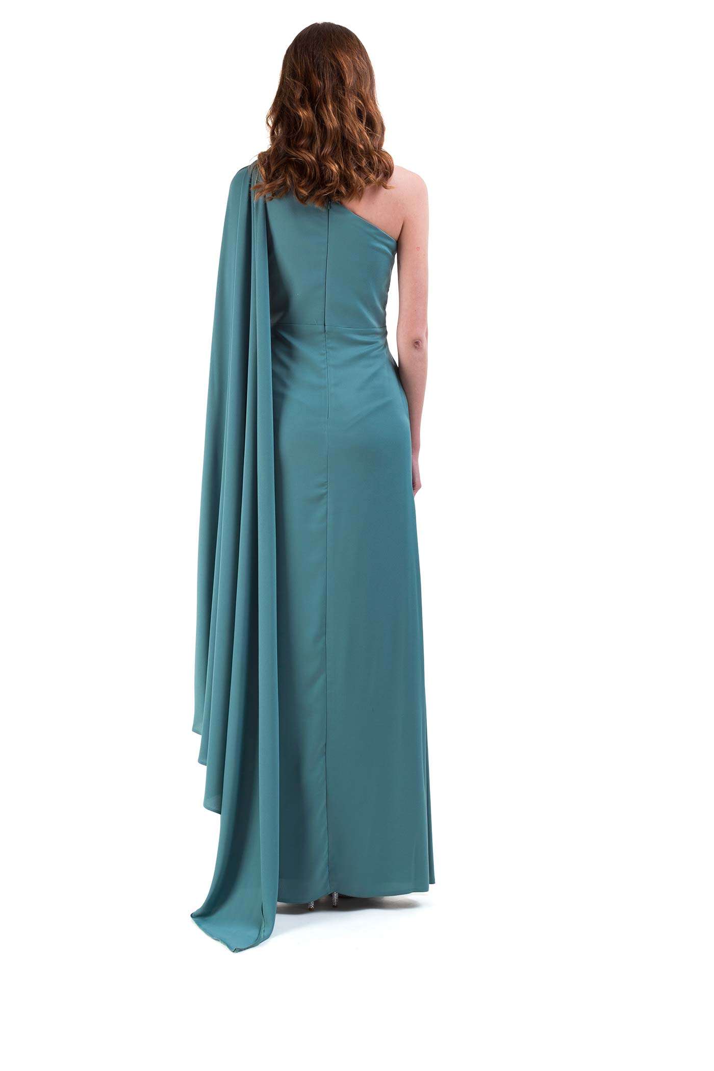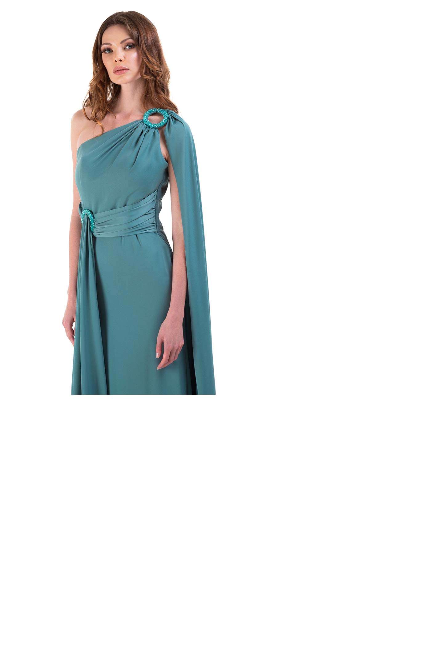 Abito elegante da cerimonia realizzato in Chiffon. La scollatura asimmetrica e due dettagli luminosi arricchiscono questo modello dal gusto minimal. - Additional Information