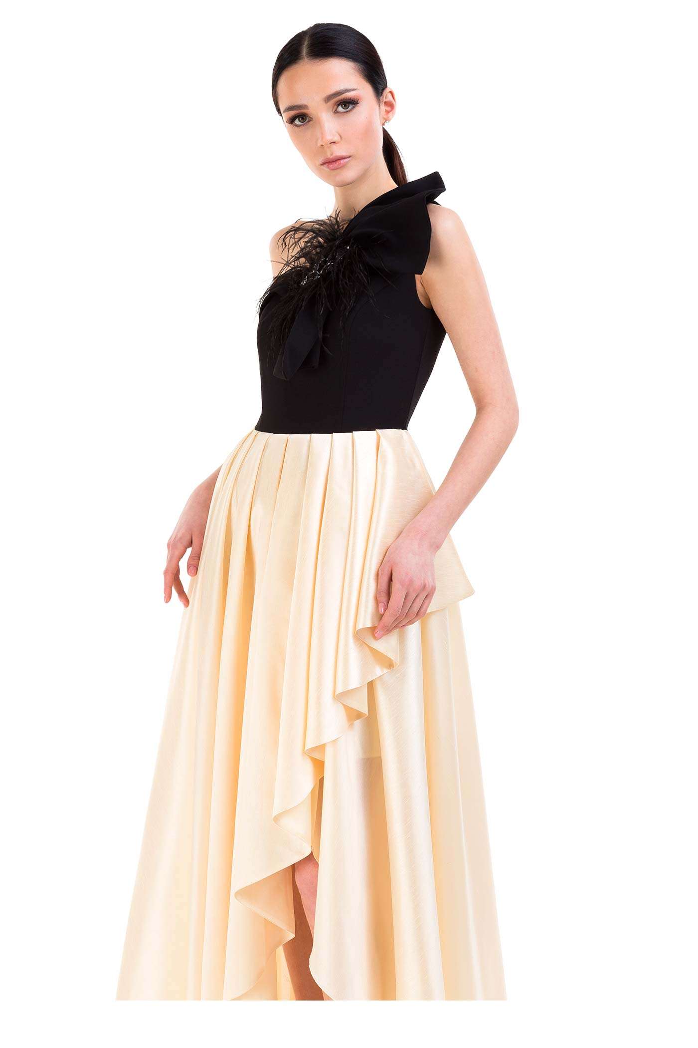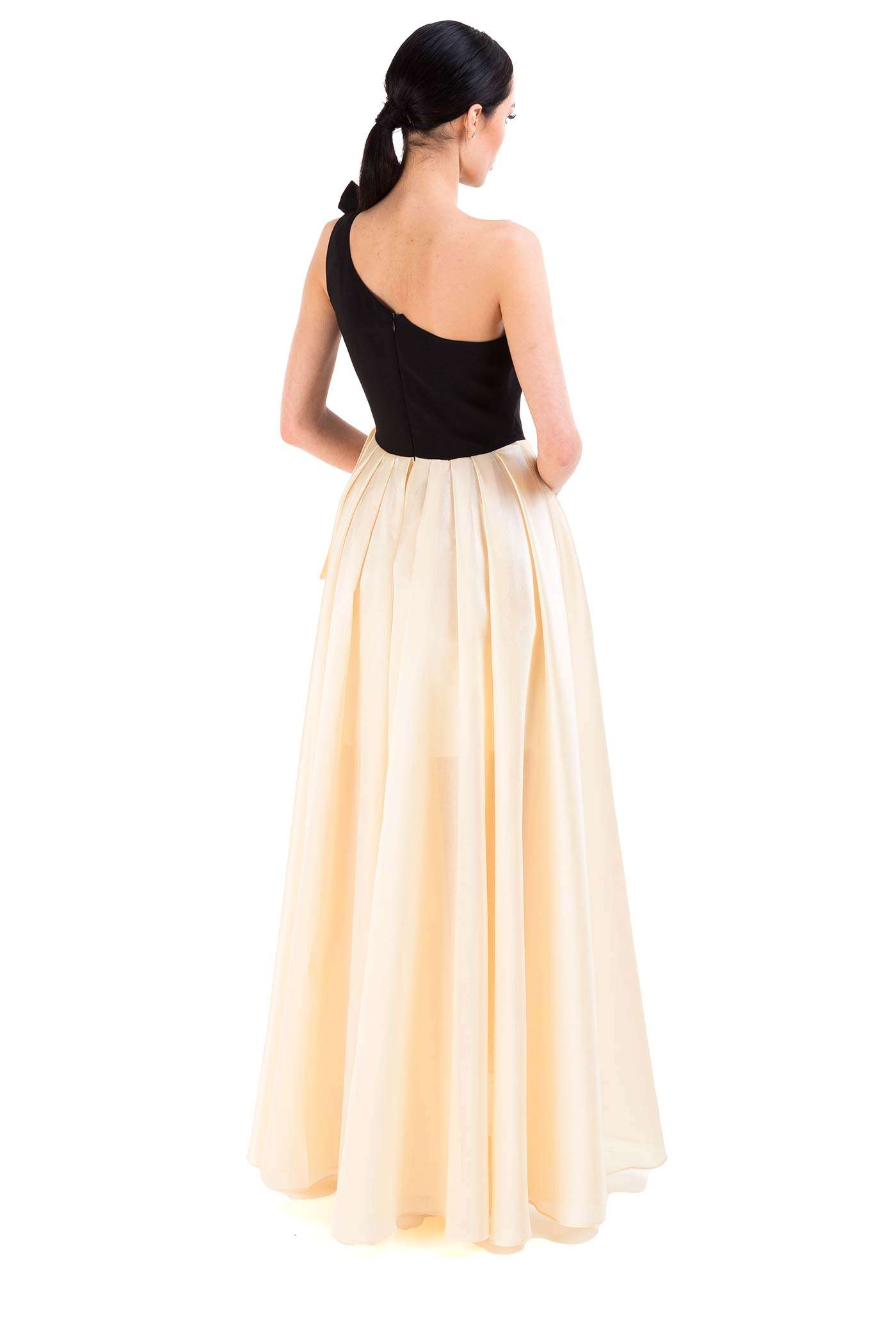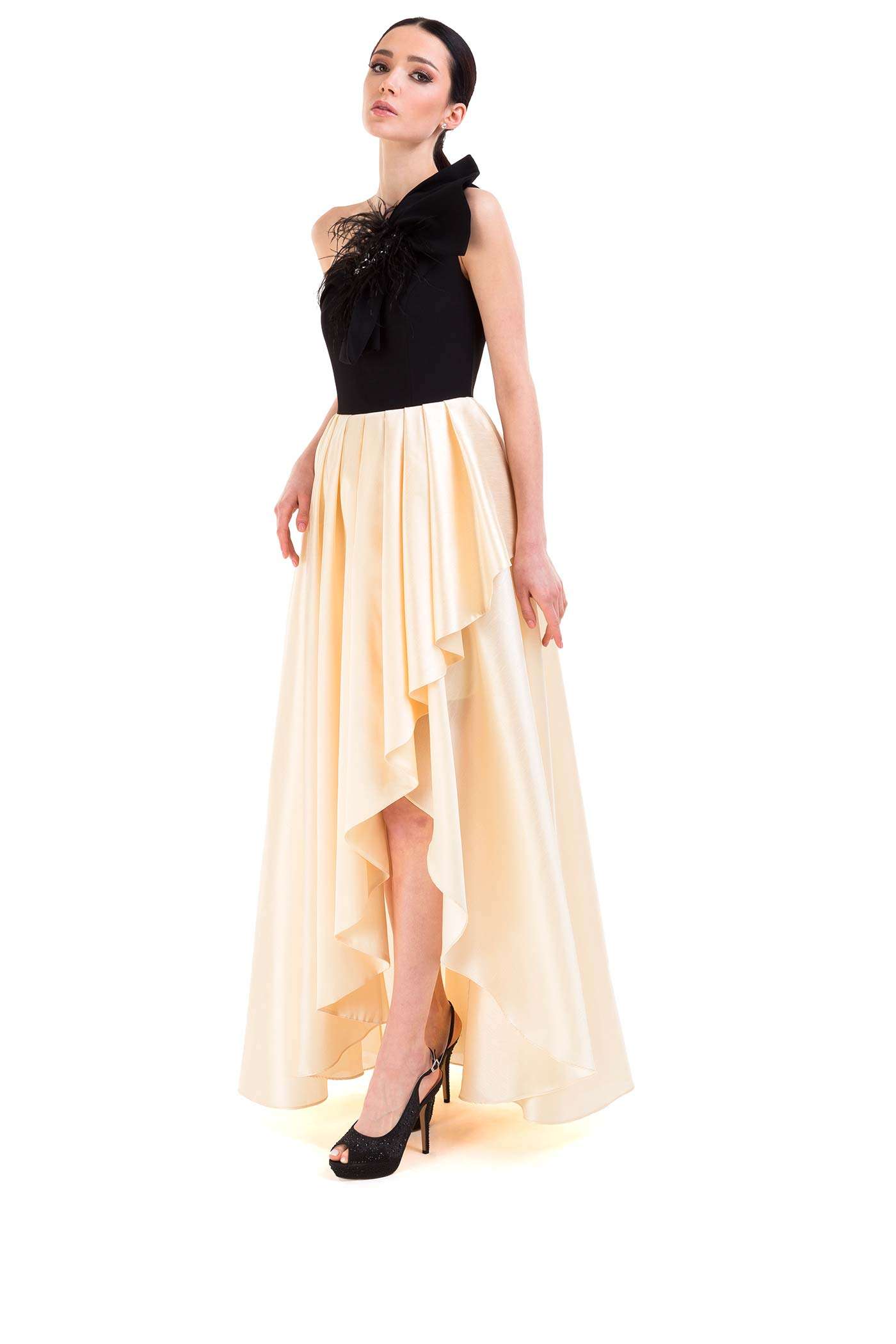 Asimmetrico abito da cerimonia in Mikado. Il tessuto importante e luminoso rende unico questo modello dalle linee semplici. Leggero, arioso, dolce e molto romantico, un design femminile che gioca con il movimento della gonna. - Additional Information