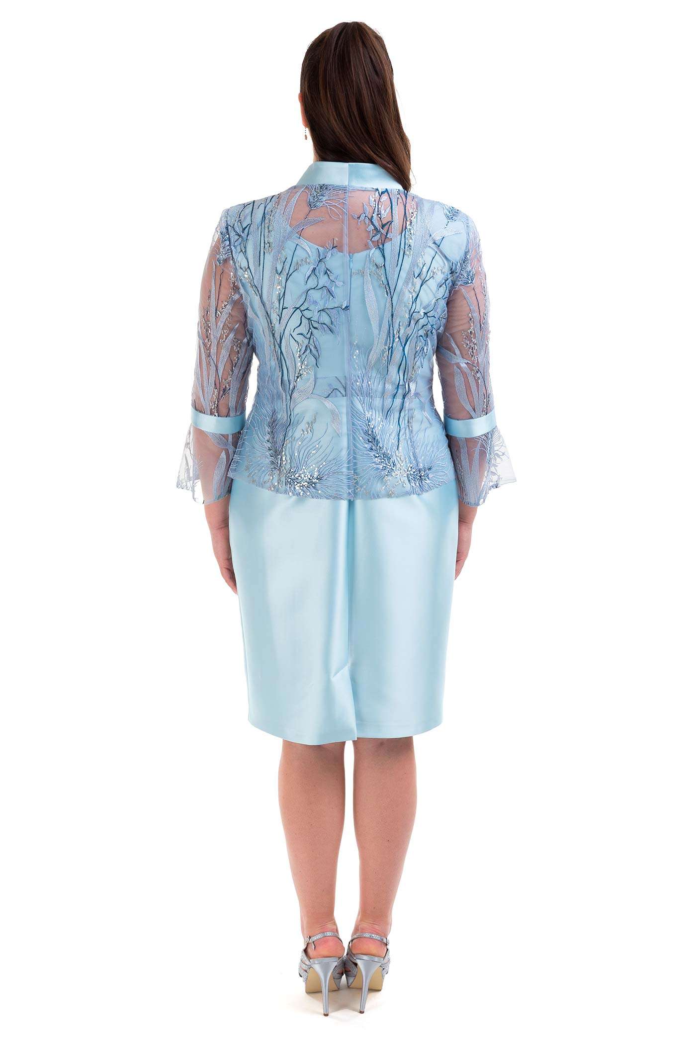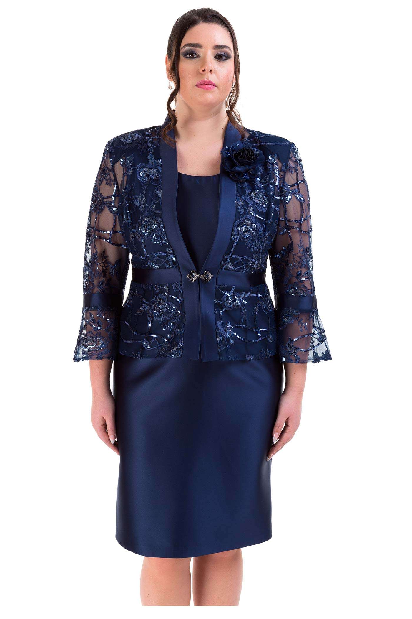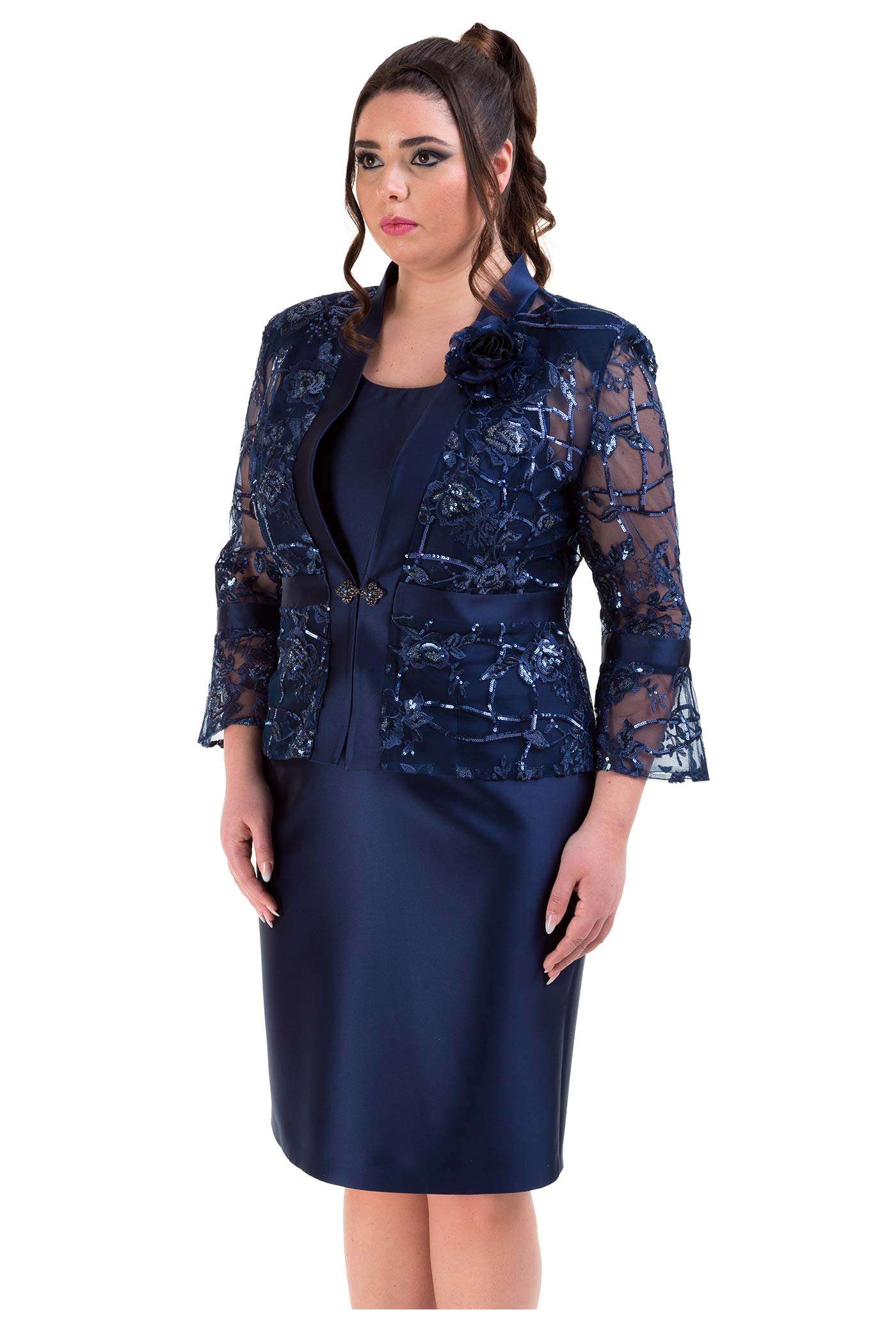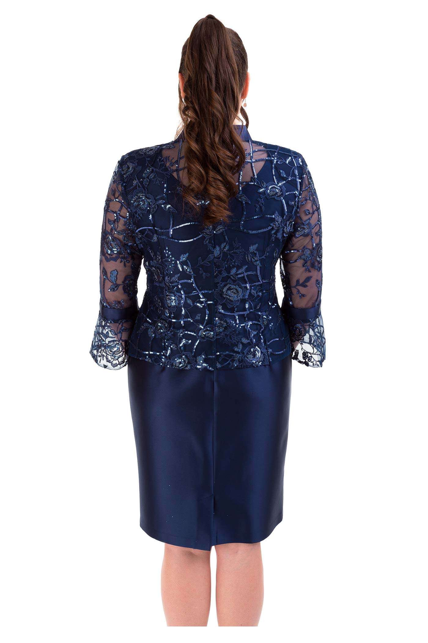 Completo con abito corto e giacca. Un abito a tubino realizzato in raso con scollo a U e dettaglio in vita. La giacca con maniche tre quarti realizzata in pizzo e raso, riprende il dettaglio romantico dell'abito. - Additional Information