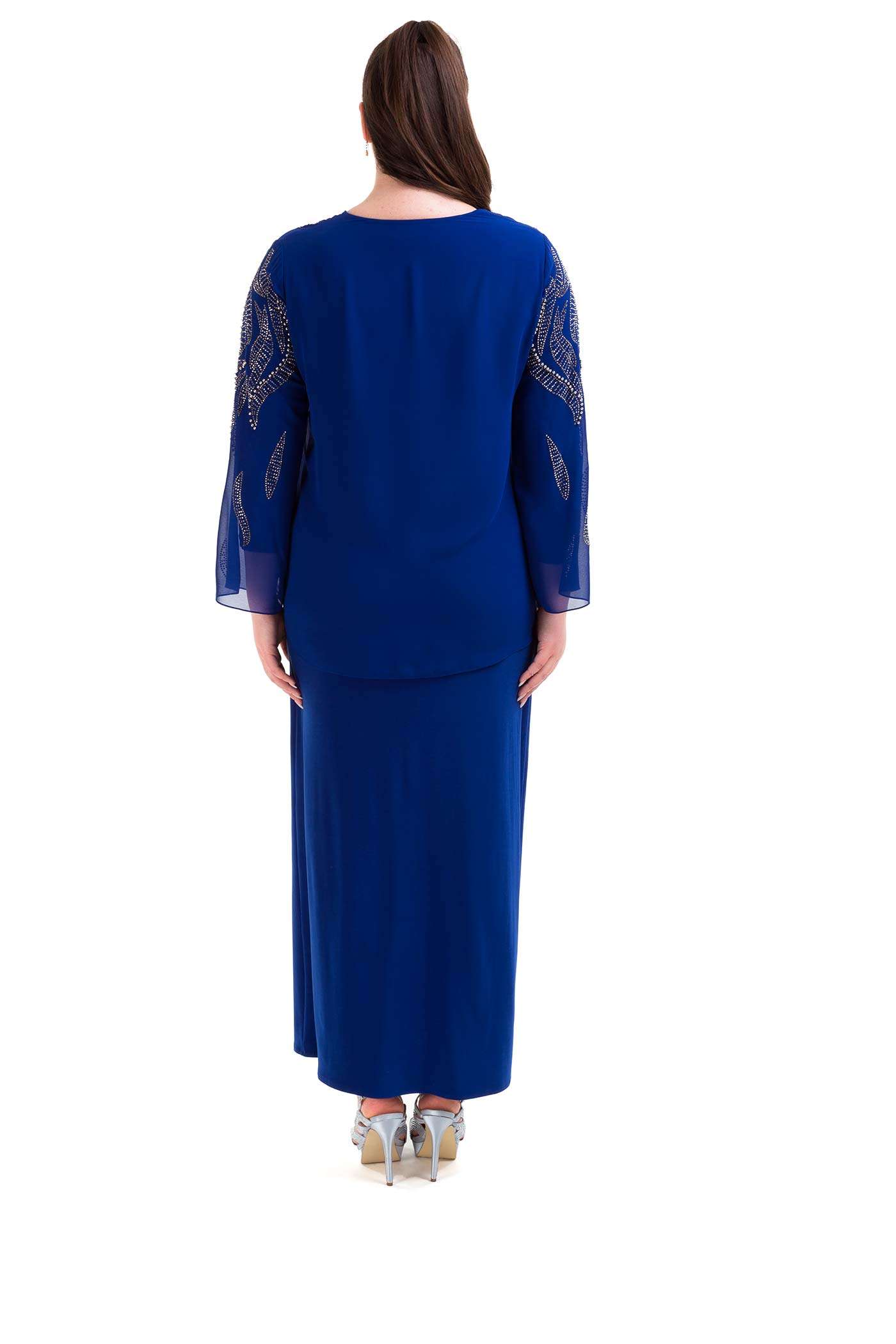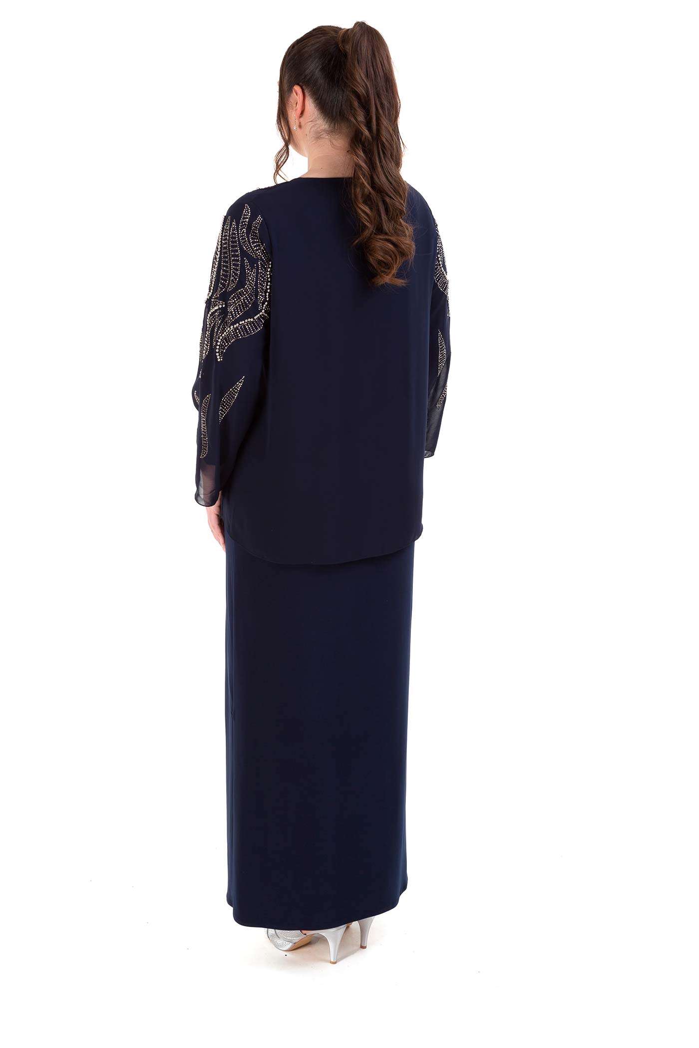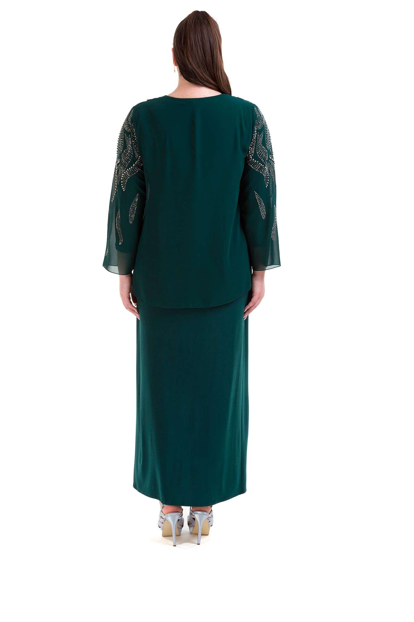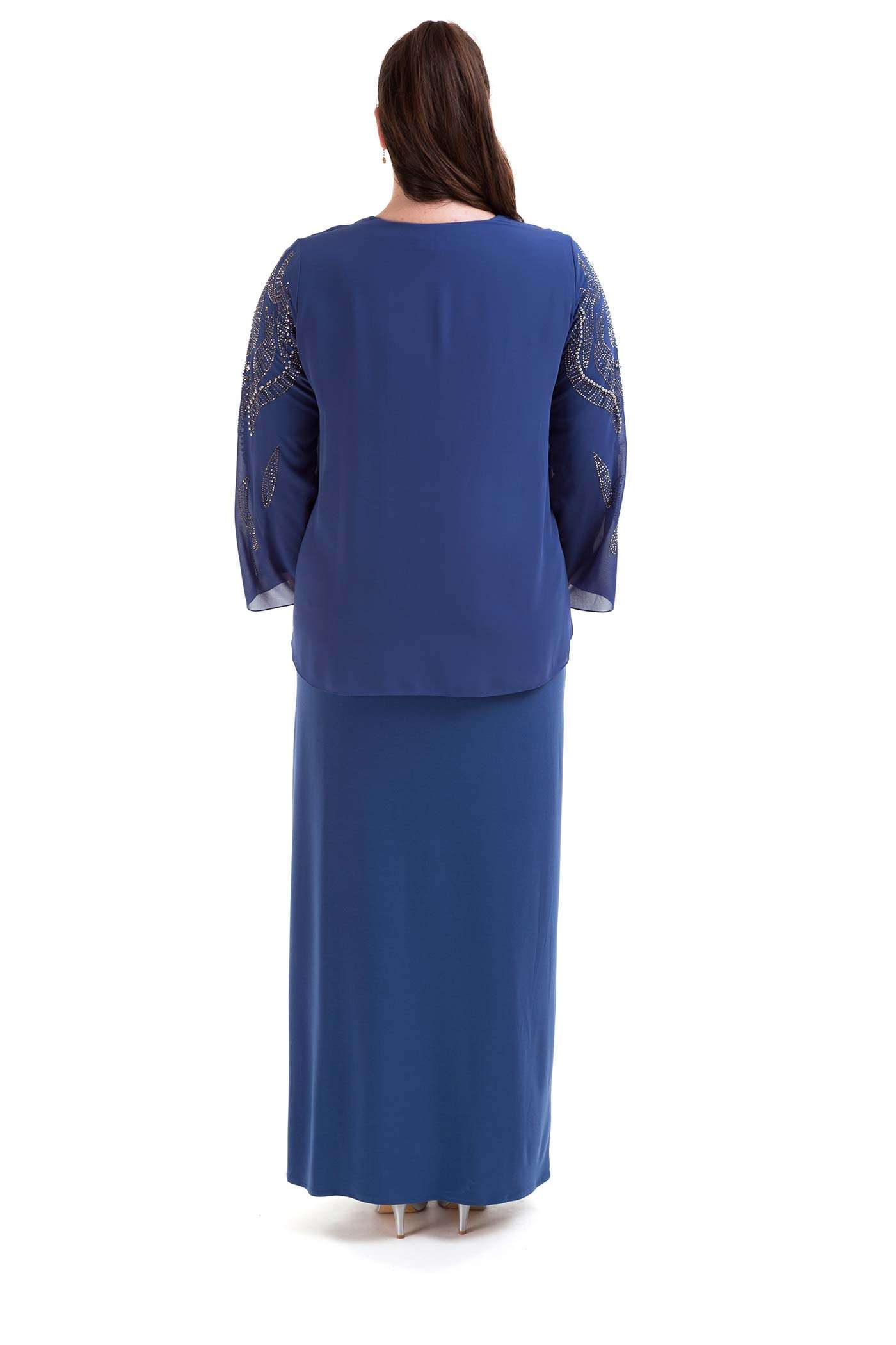 Abito elegante in Jersey e Chiffon. Un modello dalle linee semplici con mantellina con maniche lunghe e ricamo luminoso. - Additional Information