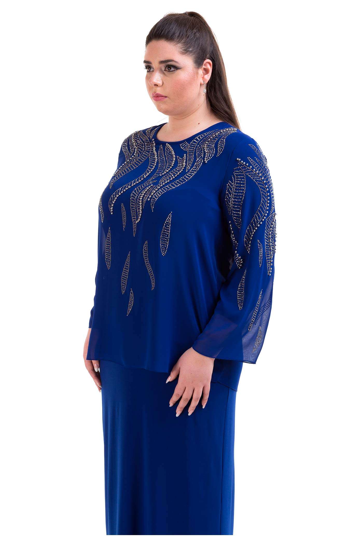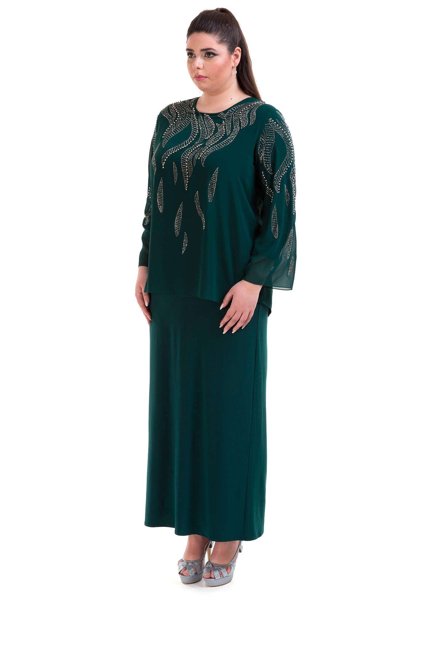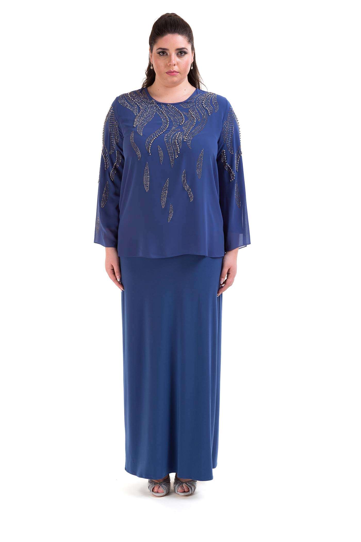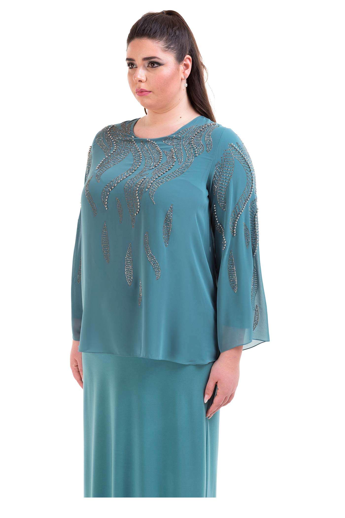 Abito elegante in Jersey e Chiffon. Un modello dalle linee semplici con mantellina con maniche lunghe e ricamo luminoso. - Additional Information