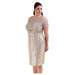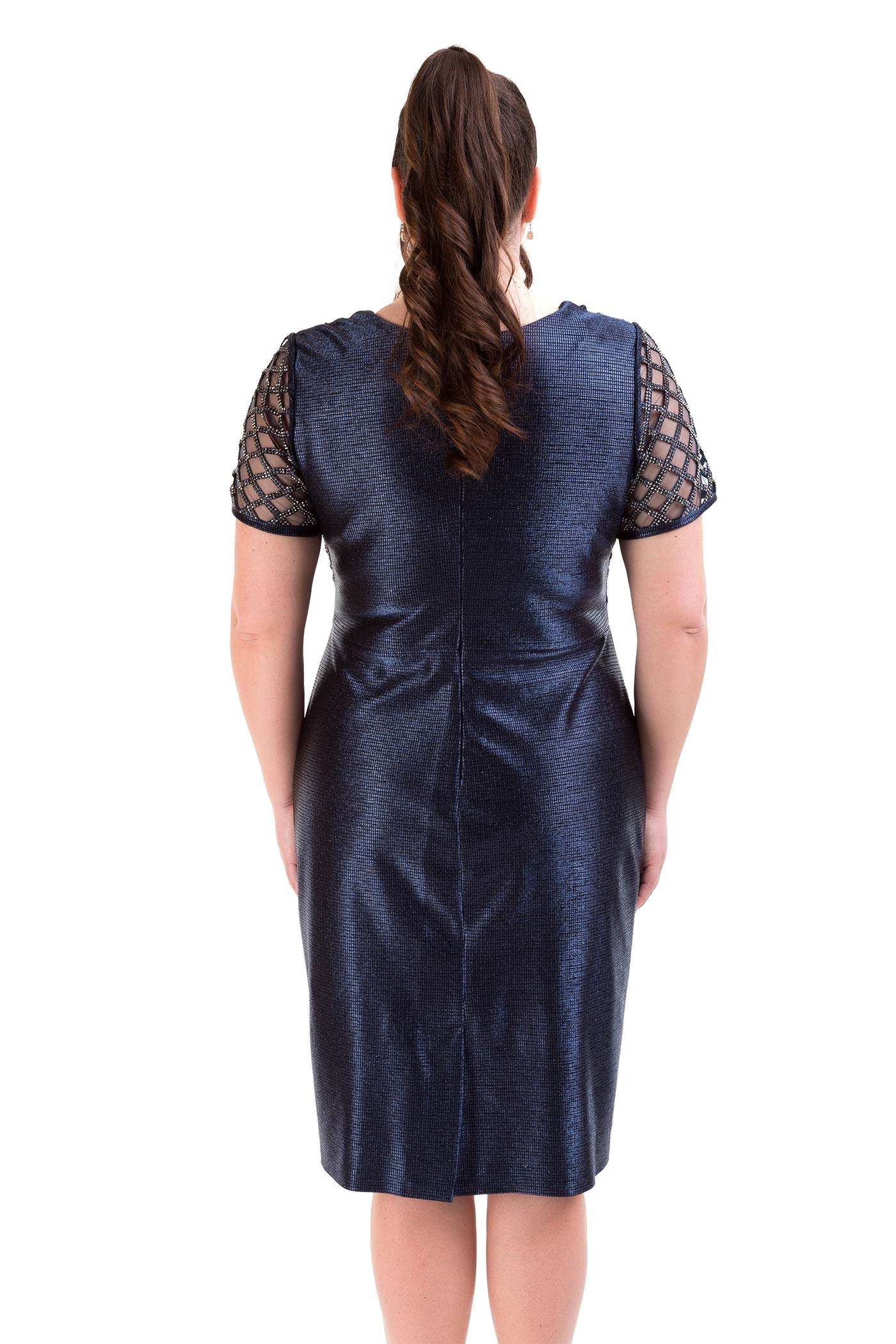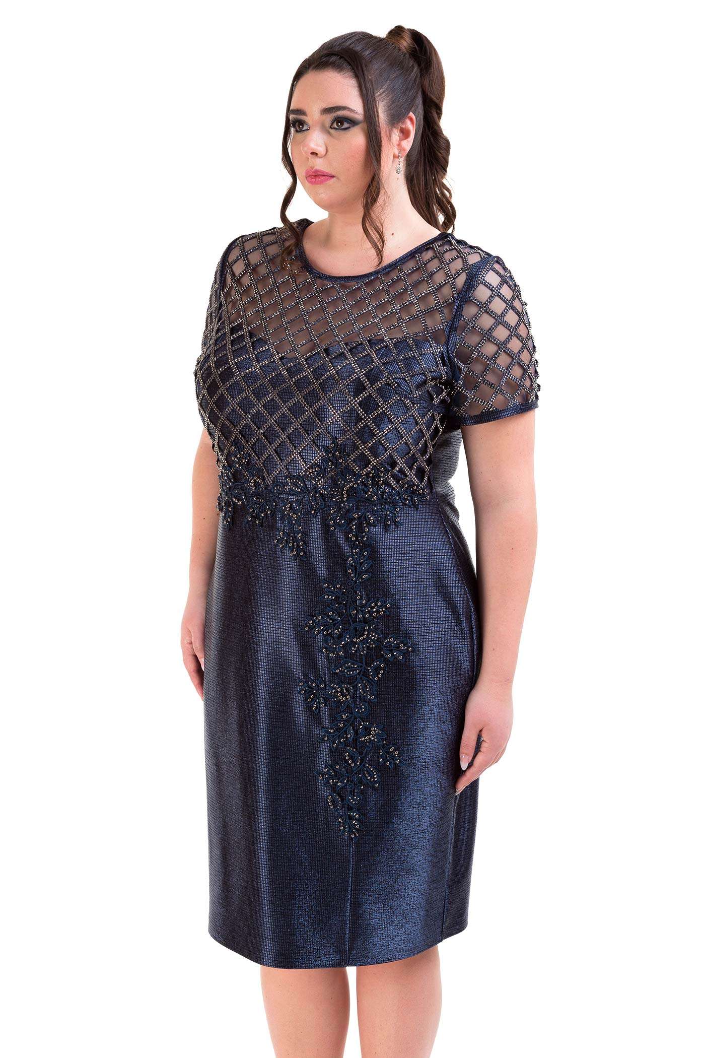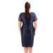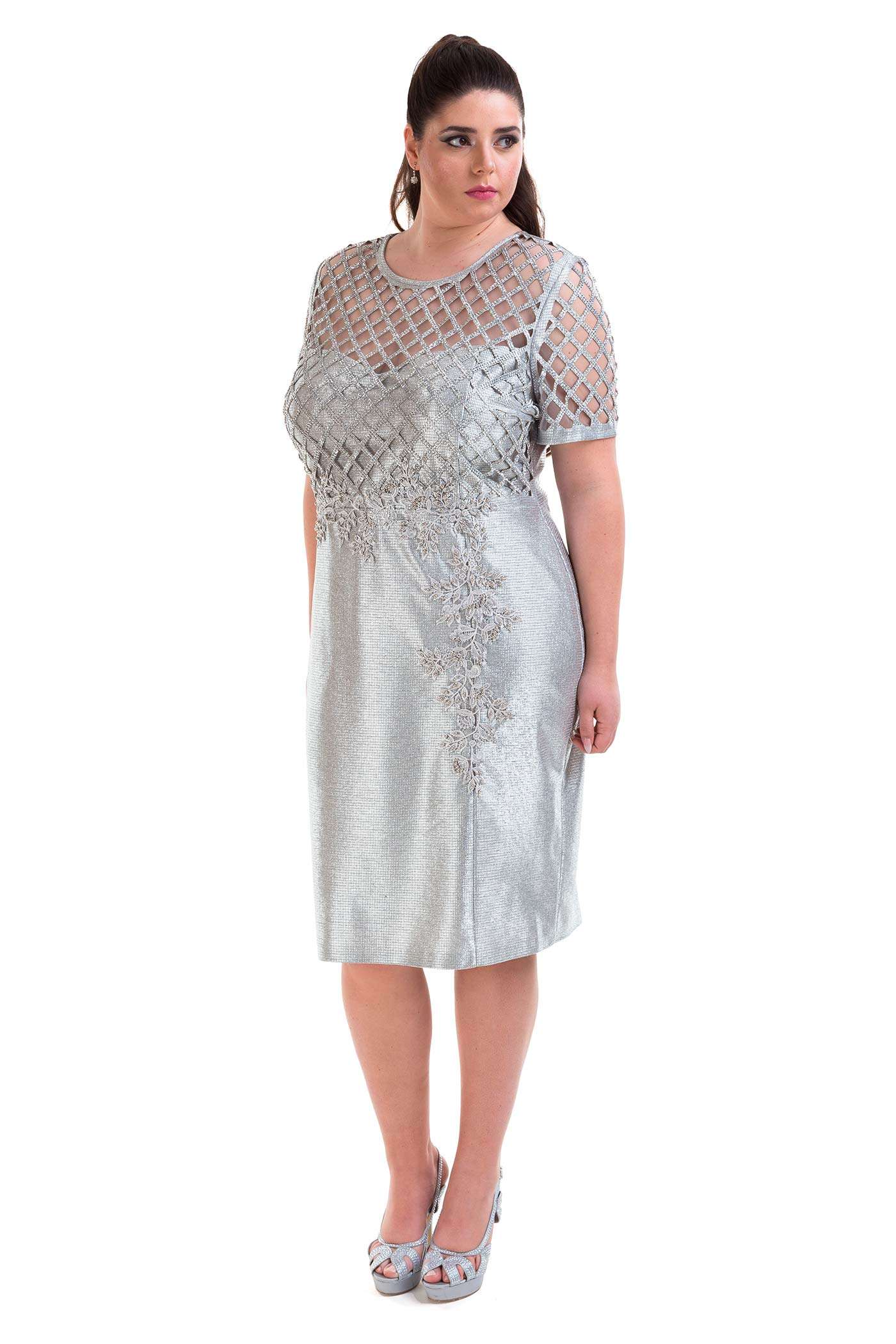 Abito corto in Lurex. Un modello con girocollo e maniche corte impreziosito da un ricamo tono su tono e strass che ornano il corpetto creando luce e movimento. - Additional Information